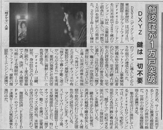 2025年12月16日の住宅新報に、当社グループ会社DXYZが展開する顔認証IDプラットフォーム「Freeid(フリード)」の導入戸数が1万戸突破した件について掲載いただきました。