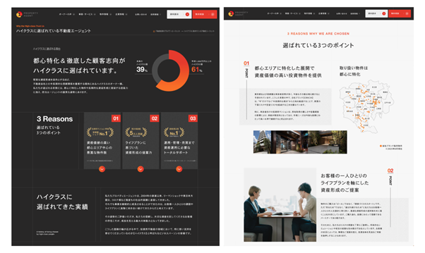 当社は、多くのハイクラスの皆さまに支えられ、創業以来21期連続で増収を達成いたしました。日々忙しくビジネスに励み、「長期的な信頼関係を重視し、安心して任せられるパートナーを選ぶ」という価値観を持つハイクラス層に、なぜ選ばれ続けてきたのか?その理由を紐解くコーポレートサイトとなっております。