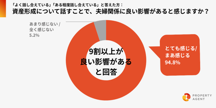 資産形成について話し合っている夫婦のうち、94.8%が「夫婦関係に良い影響を感じる」と回答しました。